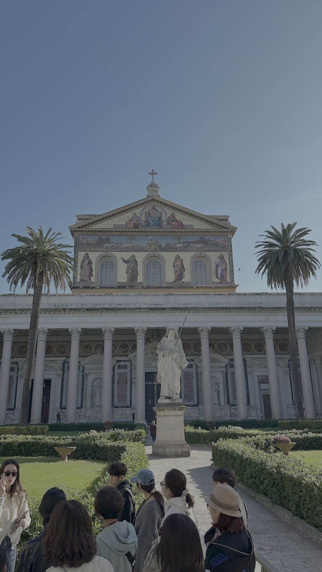 차량으로 다시 이동한 곳은 "성 밖 성 바오로 대성당"(위치) 성 바오로가 순교하고 묻힌 곳 위에 새워진 성당이라고 한다. 약간 이국적인 느낌의 정원을 지나 성당으로 들어갈 수 있었다.