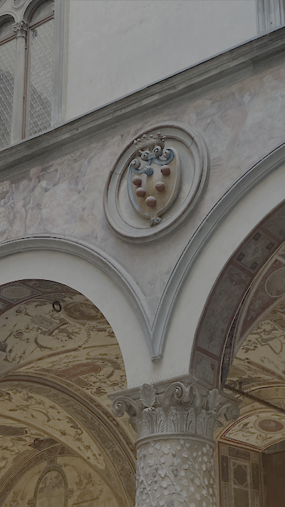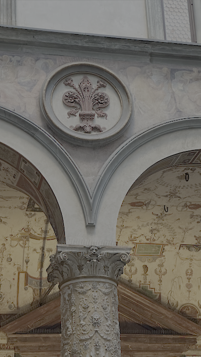 먼저 광장의 "베키오 궁전"(위치)을 설명했다. 피렌체는 메디치 가문의 역사와 관련이 많아서 메디치 가문을 설명해주면서 베키오 궁전 (현재는 시청사로 사용)을 입구에서 설명을 들었다. 들어가면 작은 정원같은 곳에 피렌체의 문장과 메디차 가문의 문장을 볼수 있다.