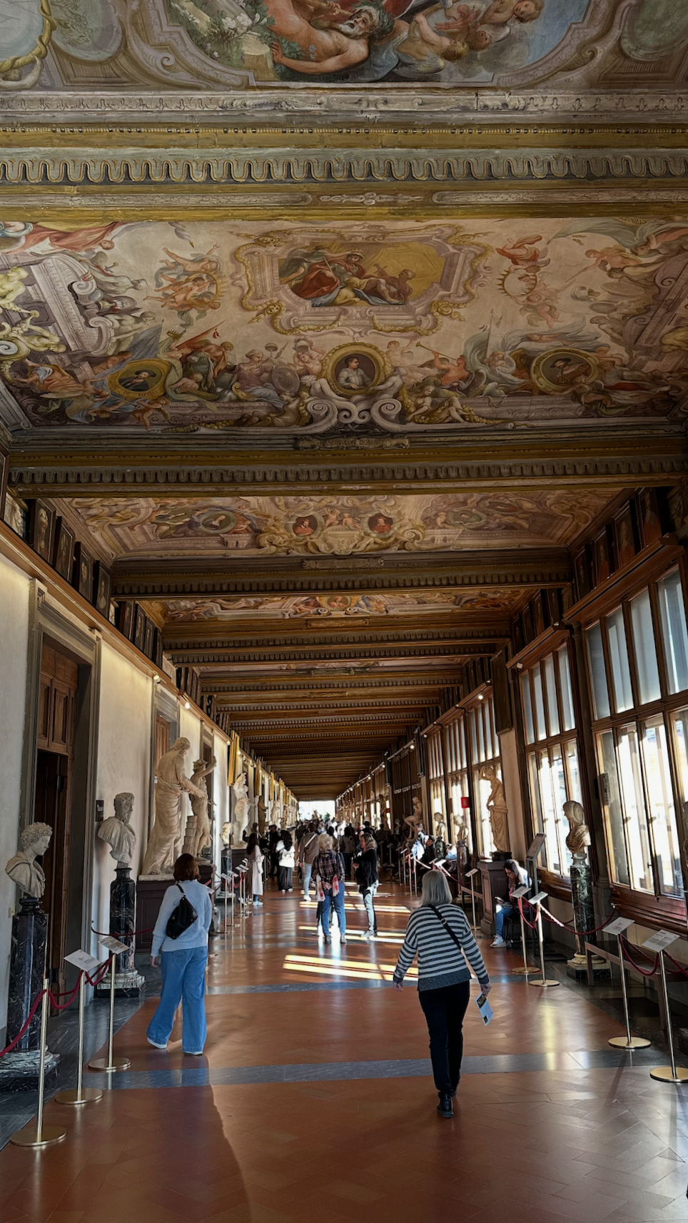 미술관 복도도 인상적이다. 복도 양쪽에 늘어서 있는 조각상과 걸려있는 초상화들이 계속 이어진다. 이 미술관은 예전에 메디치 가문(금융업)이 행정 업무를 보기 위해서 사용하던 곳이라고 한다. 여러 위원회, 단체와 길드도 같이 운영하던 곳이라고 한다. 고풍스러운 옛 모습이 그대로 미술관으로 만든것도 인상적이다.